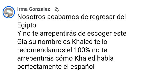Olha, a nossa experiência no Egito foi fantástica, Khaled cuidou dos mínimos detalhes, nos deu segurança e demonstrou muito conhecimento. Foi uma viagem incrível. 100% confiável, RECOMENDADISSIMO.